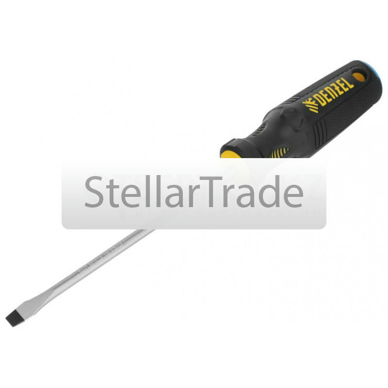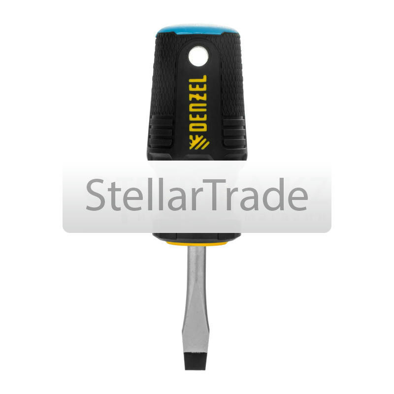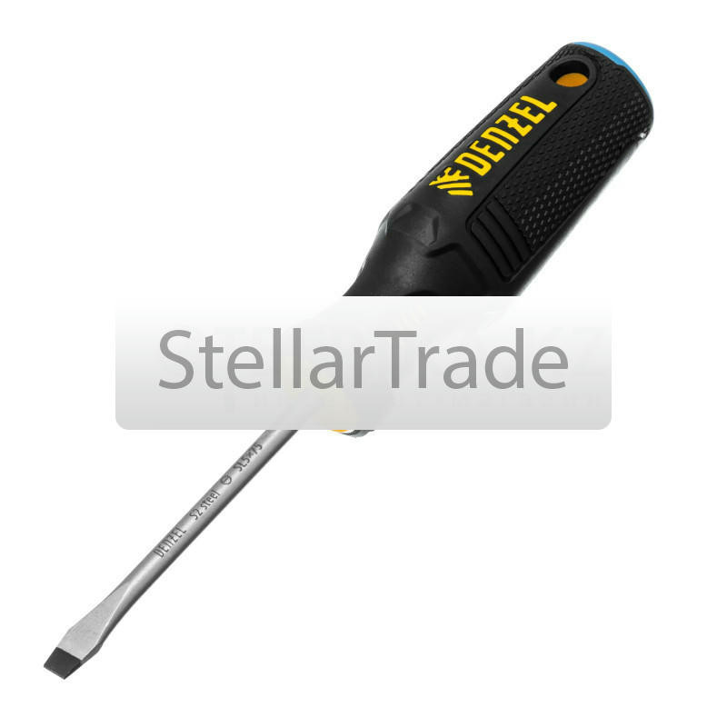 Отвертка Denzel 121947980Купить!тг.Stellartrade.kzДоставка: из АлматыПожаловатьсяОтвертка Denzel 121947 с трехкомпонентной рукояткой, со стержнем из стали S5, длиной 75 мм, предназначена для монтажа и демонтажа винтов и саморезов с прямым шлицем SL5. Высокоточный намагниченный шли еще→ц крепко фиксируется в головке крепежа. Отвертка выдерживает интенсивное применение, предназначена для выполнения профессиональных ремонтных и монтажных работ. Преимущества Denzel 121947: