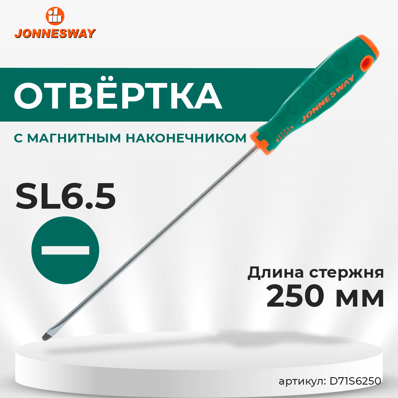 Jonnesway D71S62503 886Купить!тг.Avtoinstrument.kzДоставка: из АстаныПожаловатьсяОписание: Отвертка стержневая шлицевая ANTI-SLIP GRIP Намагниченный наконечник SL6.5х250 мм