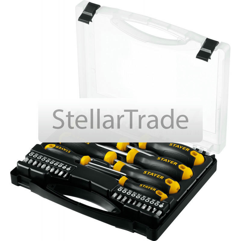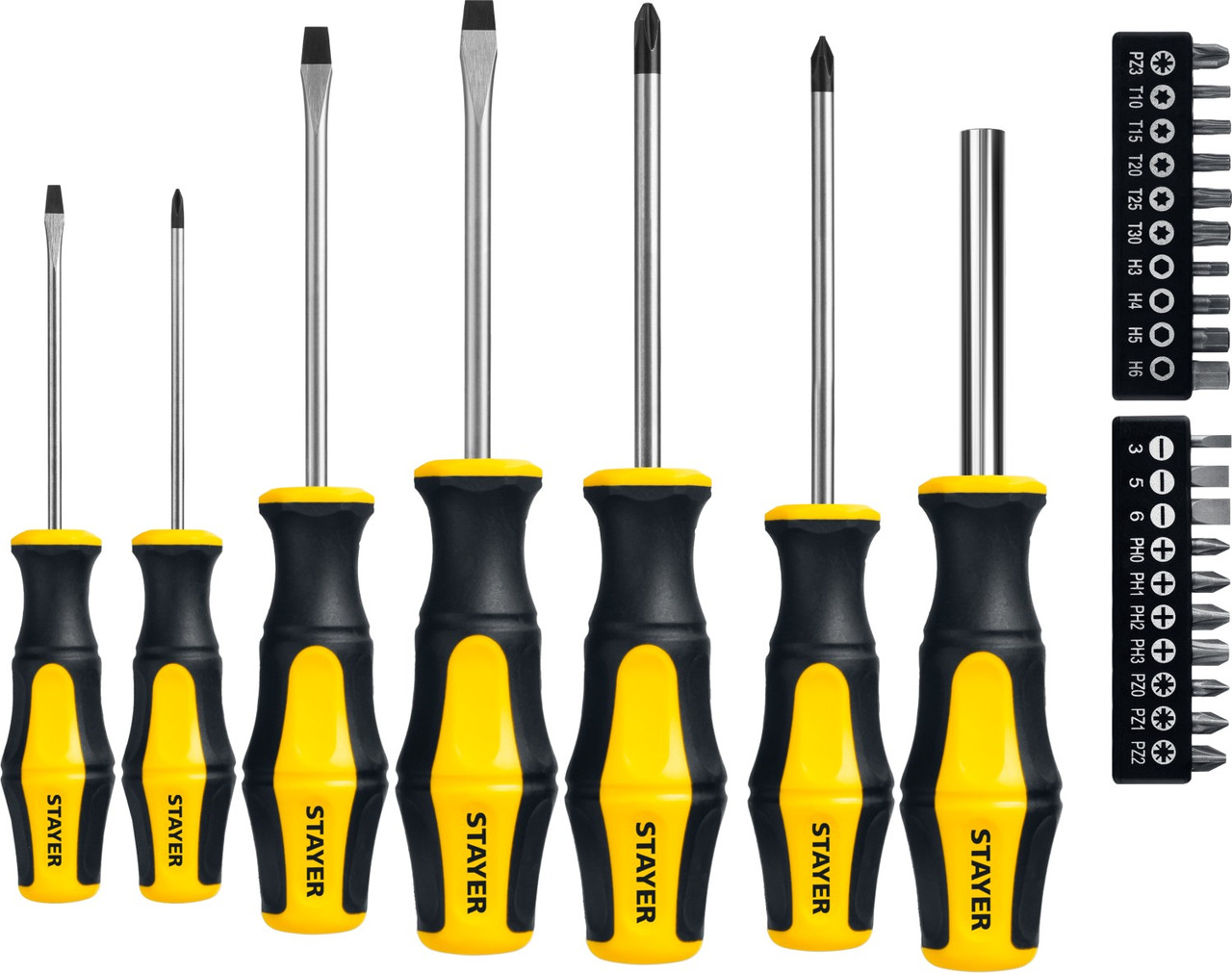 — отвертка, поставляемая с набором бит — сменных наконечников разного типа и размера. Такой инструмент нередко является более предпочтительным, чем набор традиционных отверток: во-первых, он занимает намного меньше места, во-вторых, кроме отверточных наконечников, в комплекте можно предусмотреть и другие типы бит — например, для работы в качестве накидного гаечного ключа. Правда, биты из-за небольшого размера легко теряются, однако это уже вопрос аккуратности и внимательности самого пользователя; кроме того, некоторые модели имеют гнезда для закрепления сменных наконечников прямо на рукоятке. Сама рукоятка может иметь динамометрический механизм или трещотку (см. соответствующие пункты).Биты от разных моделей отверток могут быть взаимозаменяемыми, однако это не гарантируется.