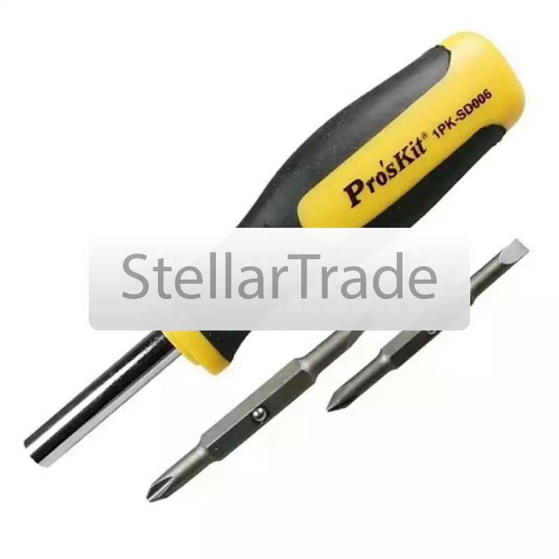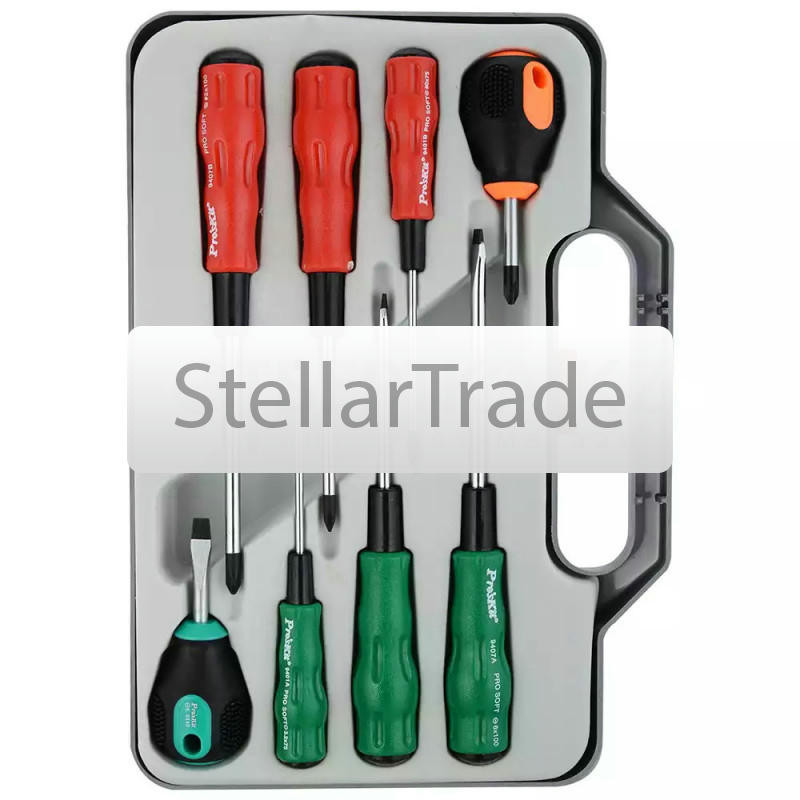 Набор отверток ProsKit 1PK-940115 910Купить!тг.Stellartrade.kzДоставка: из АлматыПожаловатьсяНабор ProsKit 1PK-9401 включает в себя 8 отверток, которые идеально подходят для работы с крепежом в различных условиях, будь то домашний ремонт или профессиональное использование на производстве. Сте еще→ржни изготовлены из хром-молибден-ванадиевой стали AISI 8660, что обеспечивает их прочность и долговечность. Рукоятки с мягким полипропиленовым покрытием минимизируют скольжение, улучшая