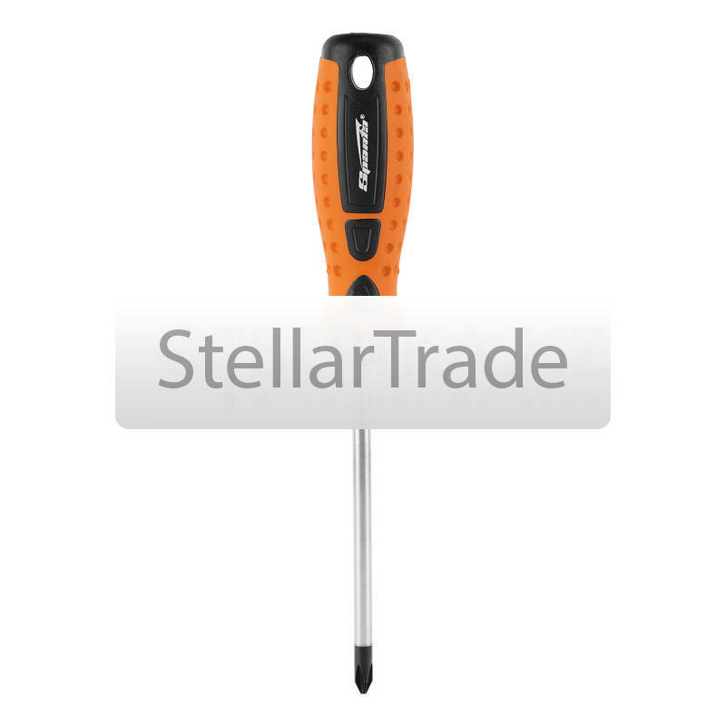 Отвертка "Point", PH2 х 150 мм, CrV, двухкомпонентная рукоятка Sparta 11780mi501Купить!тг.All-tools.kzДоставка: из АлматыПожаловатьсяОтвертка Sparta «Point» 11780 из стали CrV, с 2-х компонентной рукояткой, подходит для монтажа/демонтажа крестового крепежа PH2. Она поможет мастерам провести мелкие бытовые работы в доме или автомаст еще→ерской. Отвертка оснащена стержнем длиной 150 мм для работы на поверхностях и в углублениях.ПреимуществаИзносостойкость — стержень выполнен из углеродистой стали.Улучшенное сцепление с крепежом — рабочая часть фосфатирована.Удобство работы — на рукоятке имеется маркировка с типом шлица и длины стержня отвертки.Двухкомпонентная эргономичная рукоятка — увеличенная передача крутящего момента позволяет добиться снижения нагрузки на запястье.