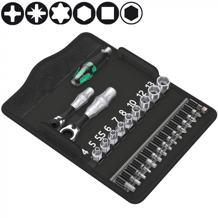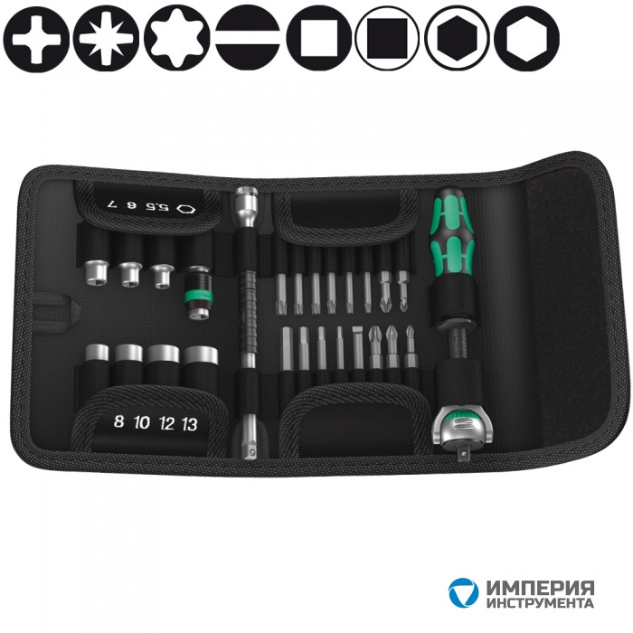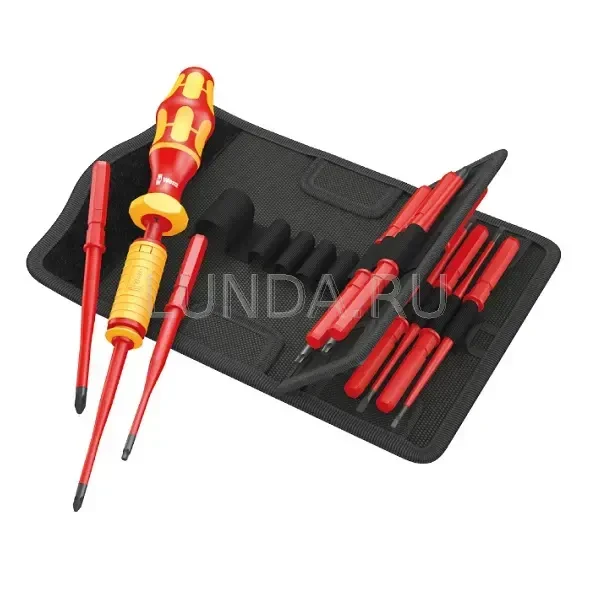 Набор WERA Kraftform Kompakt W1 135926231 000Купить!тг. Маркетплейс: Satu.kz КлимаТехника Доставка: по Казахстану Пожаловаться35 предметов. Не повреждающий рабочую поверхность, компактный футляр из износостойкого и долговечного текстиля. Малый вес и объем для повышения мобильности.Компактный набор из 35 важнейших отверточных еще→инструментов для сервисных работ внутри и вне помещений. Ручка-держатель VDE + 12 сменных концов VDE; 1 двусторонний рожковый ключ JOKER с функцией фиксации, упором, малым углом возврата и