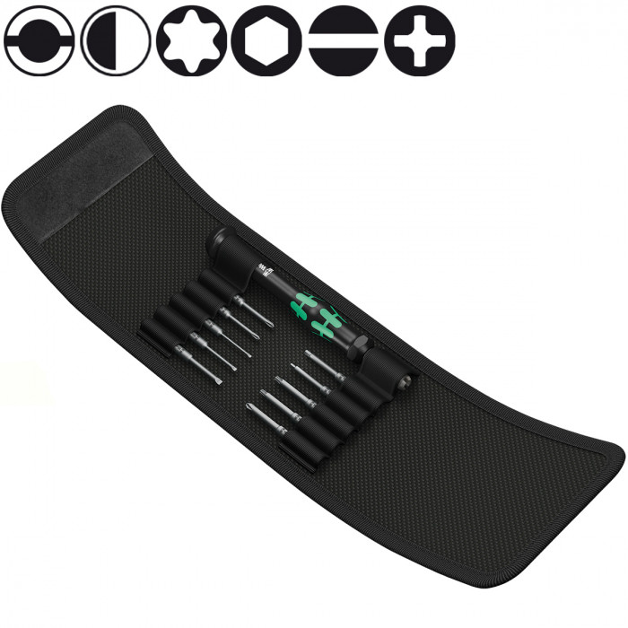 Набор отверток WERA Kraftform Kompakt Micro-Set/11 SB для электроники 13593883 300Купить!тг. Маркетплейс: Satu.kz КлимаТехника Доставка: по Казахстану ПожаловатьсяНабор Kraftform Kompakt Micro-Set для тонкой работы.Подходит для битов с хвостовиком 4 мм Halfmoon (тип хвостовика Wera 9) и 4 мм HIOS (тип хвостовика Wera 21).Система "Одна ручка – много насадок" для еще→моментальной смены насадок;ручка Kraftform Micro с подвижной головкой и зоной быстрого вращения для работы отвёрткой в скоростном режиме, не надо тратить время на перехватывание инструмента;зона приложения усилий с