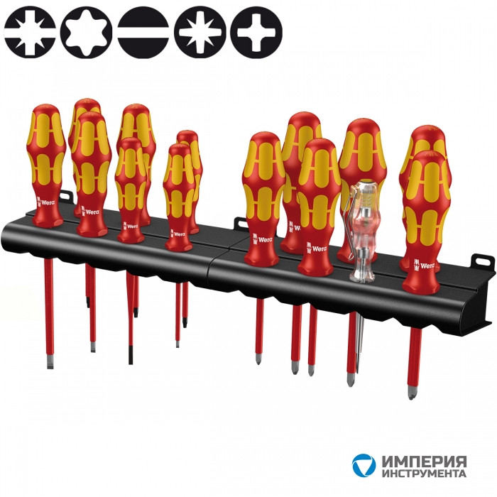 Набор отверток диэлектрический WERA Kraftform Big Pack 100 VDE , 105631133 300Купить!тг. Маркетплейс: Satu.kz КлимаТехника Доставка: по Казахстану ПожаловатьсяНабор электроизолированных отверток, 7 предметов, с поштучной проверкой по стандарту IEC 60900.Поштучная проверка в водяной бане под напряжением 10000 В для безопасной работы на оборудовании с максима еще→льно допустимым напряжением 1000 В.Ручка Kraftform Plus для комфортной работы без появления на руках мозолей и волдырей.Твердые зоны ручки для высокой скорости работы, в то время как мягкие зоны