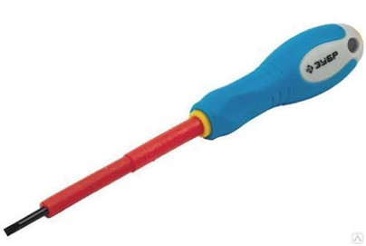 Отвертка ЗУБР "ЭЛЕКТРО-ЭКСПЕРТ", хромованадиевая сталь, трехкомпонент. рукоятка, высоковольтная до ~1000В, SL, 25261-4.0-100735Купить!тг.All-tools.kzДоставка: из АлматыПожаловатьсяПредназначена для выполнения электромонтажных работ под напряжением до 1000 В. Стержень отвертки изготовлен из хромованадиевой стали Специальная закалка по особой технологии Специально сконструирован еще→ная эргономичная трехкомпонентная рукоятка оптимальной формы обеспечивает как передачу высокого крутящего момента от руки к профилю крепежа, так и быстрее выполнение работ, не требующих усилий.
