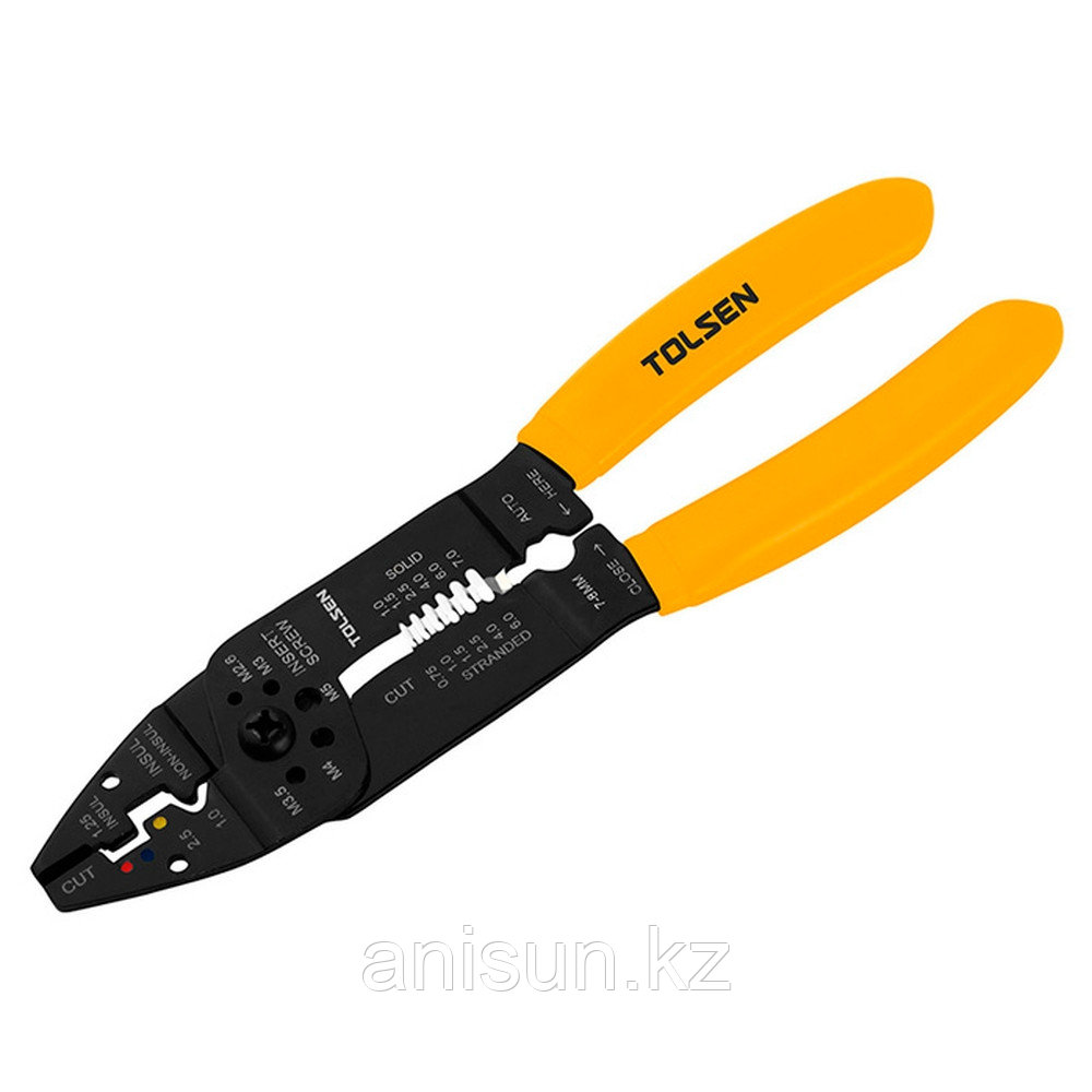 Клещи для зачистки проводов TOLSEN 160мм 38051Клещи для зачистки проводов TOLSEN 160мм 38051 - упрощают работу электрика. Инструмент оснащен удобными рукоятками, что позволяет без труда удерживать инструмента в ладони. Простая настройка делает рабочий процесс легким и быстрым. Клещи не повреждают жилы кабеля, сохраняя его свойства. 2 285 тг. Маркетплейс: Satu.kz Ani-Sun Trade Доставка: по Казахстану ПожаловатьсяКупить!