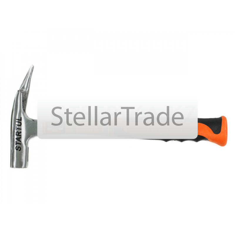 — молотки, применяемые при кровельных работах. Также могут называться «шиферными», хотя шиферные — это лишь одна из разновидностей молотков данного типа. Собственно, классические кровельные молотки имеют головку квадратного сечения с плоским бойком с одной стороны. С другой стороны головки находится специфическое приспособление, напоминающее двузубый гвоздодер столярного молотка (см. соответствующий пункт) с одним отломанным зубом. Оставшийся зуб применяется, в частности, для пробивания отверстий в кровельном материале и загибания краев. Шиферные молотки, в свою очередь, несколько напоминают те же столярные, однако боек в них квадратный и довольно широкий — для шиферных гвоздей; с задней стороны головки находится гвоздодер для них же.| молоток кровельщика | очистить | Сохранить список |