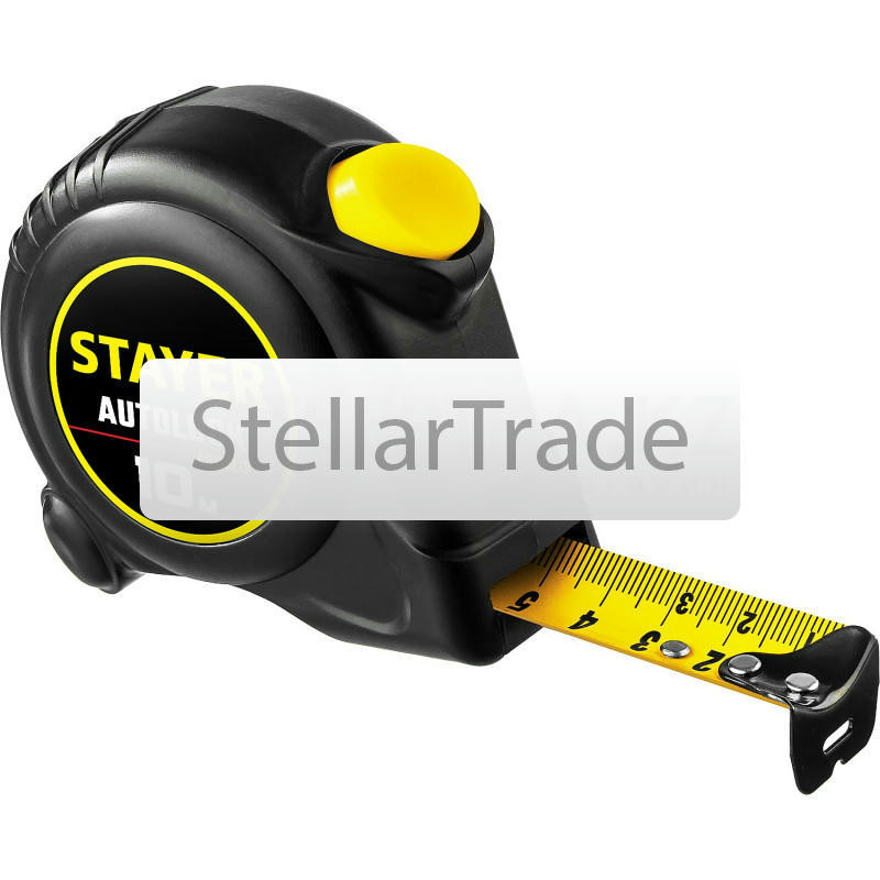 Рулетка с автостопом STAYER AutoLock 2-34126-10-253 100Купить!тг.Stellartrade.kzДоставка: из АлматыПожаловатьсяРулетка измерительная с автоматической фиксацией полотна для повышения удобства измерений Преимущества STAYER 2-34126-10-25: Автостоп быстрая и надежная фиксация полотна еще→Ударопрочный корпус из ABS пластика с противоскользящим покрытием Использование STAYER 2-34126-10-25: Для измерения линейных размеров путем непосредственного сравнения со шкалой