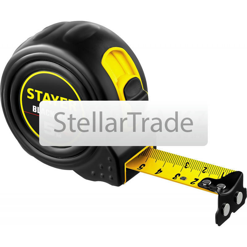 STAYER BlackMax 5м / 25мм рулетка в ударостойком полностью обрезиненном корпусе и двумя фиксаторами 3410-05-25z022 000Купить!тг.All-tools.kzДоставка: из АлматыПожаловатьсяРулетка с дополнительным фиксатором и магнитным крюком в ударопрочном корпусе