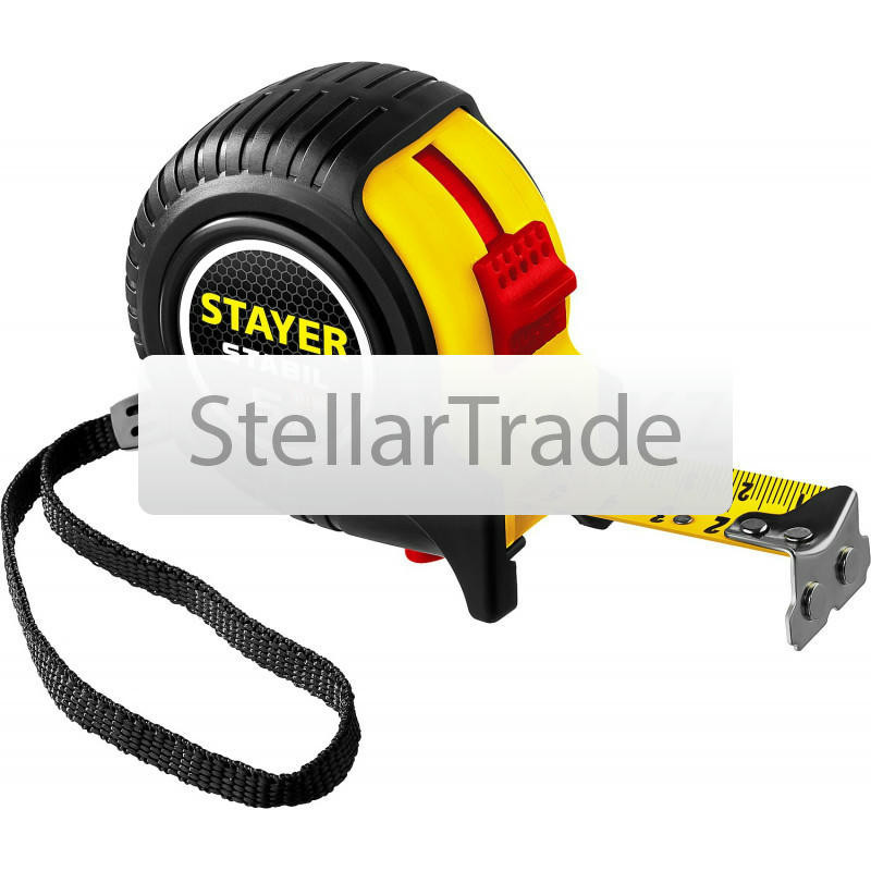 STAYER STABIL 5м / 25мм профессиональная рулетка в ударостойком обрезиненном корпусе с двумя фиксаторами 34131-05-25z022 480Купить!тг.All-tools.kzДоставка: из АлматыПожаловатьсяПрофессиональная рулетка с нейлоновом покрытием полотна, увеличивающее срок службы, магнитным крюком и дополнительным фикатором для удобства работы