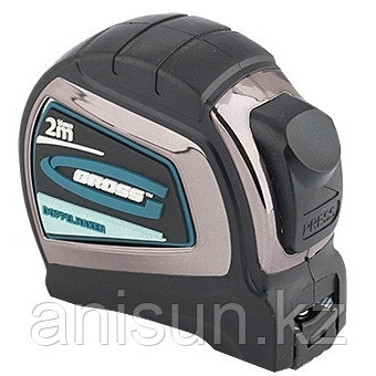 Рулетка "Ergonomisch",10 м x 25 мм, магнитный обрезиненный зацеп// GROSS4 848Купить!тг. Маркетплейс: Satu.kz Protool.kz - продажа электроинструмента, ручные ст Доставка: по Казахстану ПожаловатьсяРулетка Ergonomisch торговой марки GROSS с длиной ленты 10 м. Эргономичный корпус рулетки выполнен из ABS-пластика (используется сырье BASF), который сохраняет работоспособность механизма при падении еще→с высоты до 1,5 м. Измерительное полотно рулетки шириной 25 мм обладает высокими упругими свойствами, что позволяет производить измерения в труднодоступных местах. Основание измерительного полотна оснащено обрезиненным магнитным зацепом True Zero (истинный ноль), который обеспечивает фиксацию не только на ровных, но и на округлых поверхностях (например, на трубах). Зацеп True Zero позволяет более точно производить замеры от нуля при внешних/внутренних замерах.