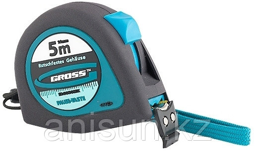 Рулетка "Ergonomisch", 5 м x 25 мм, магнитный обрезиненный зацеп //GROSS3 201Купить!тг. Маркетплейс: Satu.kz Protool.kz - продажа электроинструмента, ручные ст Доставка: по Казахстану ПожаловатьсяРулетка Ergonomisch торговой марки GROSS с длиной ленты 5 м. Эргономичный корпус рулетки выполнен из ABS-пластика (используется сырье BASF), который сохраняет работоспособность механизма при падении с еще→высоты до 1,5 м. Измерительное полотно рулетки шириной 25 мм обладает высокими упругими свойствами, что позволяет производить измерения в труднодоступных местах. Основание измерительного полотна оснащено обрезиненным магнитным зацепом True Zero (истинный ноль), который обеспечивает фиксацию не только на ровных, но и на округлых поверхностях (например, на трубах). Зацеп True Zero позволяет более точно производить замеры от нуля при внешних/внутренних замерах.