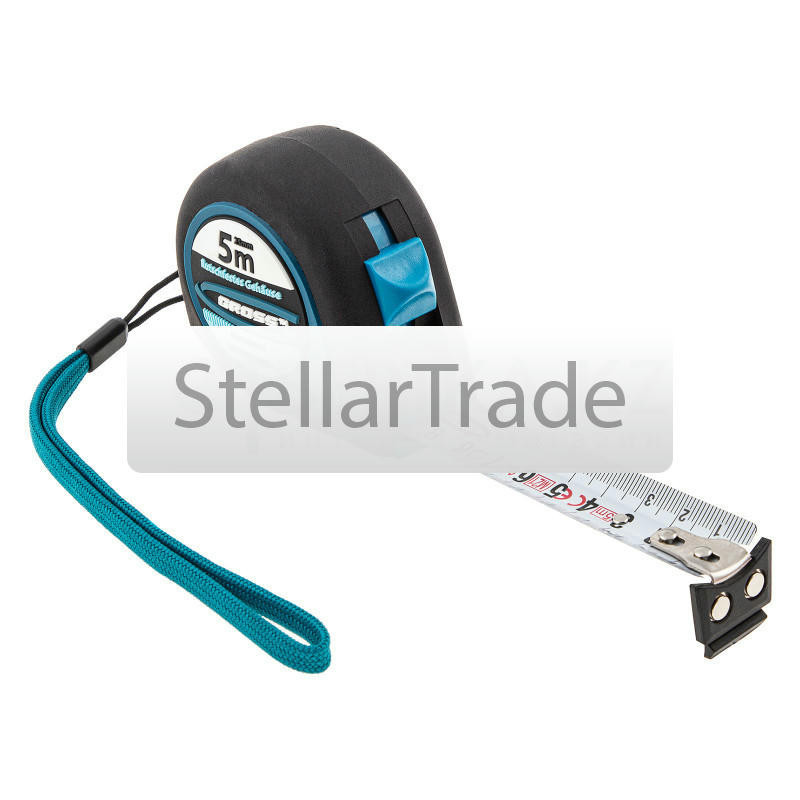 Рулетка "Schlagfest" GROSS 311124 720Купить!тг.Stellartrade.kzДоставка: из АлматыПожаловатьсяРулетка Gross «Schlagfest» 31112 с магнитным обрезиненным зацепом, двухсторонней шкалой и функцией автоматической фиксации полотна, 5 м х 19 мм, позволяет определять размеры материалов, вычислять площ еще→адь помещения и проводить другие измерительные работы Карманная рулетка - незаменимый инструмент в хозяйстве и на строительной площадке. Магнитный обрезиненный зацеп обеспечивает