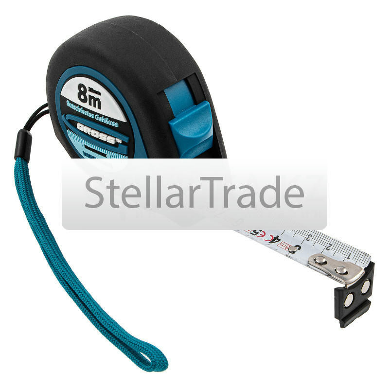 Рулетка "Ergonomisch", 8 м x 25 мм, магнитный обрезиненный зацеп Gross 31104mi4 544Купить!тг.All-tools.kzДоставка: из АлматыПожаловатьсяРулетка Ergonomisch торговой марки GROSS с длиной ленты 8 м. Эргономичный корпус рулетки выполнен из ABS пластика (используется сырье BASF), который сохраняет работоспособность механизма при падении с еще→высоты до 1,5 м. Измерительное полотно рулетки шириной 25 мм обладает высокими упругими свойствами, что позволяет производить измерения в труднодоступных местах. Основание измерительного полотна оснащено обрезиненным магнитным зацепом True Zero (истинный ноль), который обеспечивает фиксацию не только на ровных, но и на округлых поверхностях (например, на трубах). Зацеп True Zero позволяет более точно производить замеры от нуля при внешних/внутренних замерах.