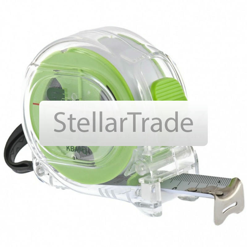 Рулетка Кварц СИБРТЕХ 325211 300Купить!тг.Stellartrade.kzДоставка: из АлматыПожаловатьсяРулетка Сибртех Кварц 32521 с полотном размером 5 м х 19 мм, в прозрачном корпусе, с амортизатором, будет полезна для измерения длины конструкций, строительных материалов и т.д. Пригодится на строител еще→ьной площадке, в гараже, мастерской и в быту. Преимущества Долговечность и надежность - корпус из поликарбоната с амортизатором защищен от внешних воздействий и не