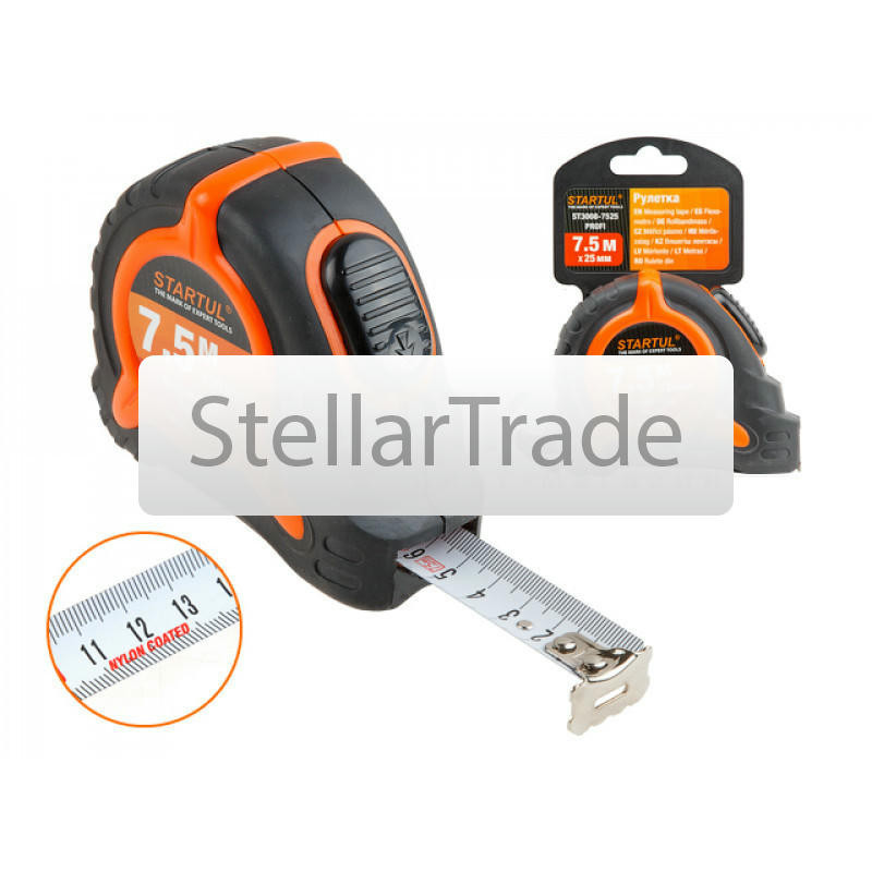 Рулетка 7,5м/25мм STARTUL MASTER (ST3002-7525) ST3002-75253 000Купить!тг.Stellartrade.kzДоставка: из АлматыПожаловаться--- Технические характеристики: Назначение: используется при выполнении измерительных или разметочных работ, Материал изготовления: ABS-пластик, резина, сталь, еще→Толщина ленты, мм: 0,115, Цена деления, мм: 1, Класс точности: 2, Не применяется/используется в сфере законодательной метрологии, --- Преимущества: