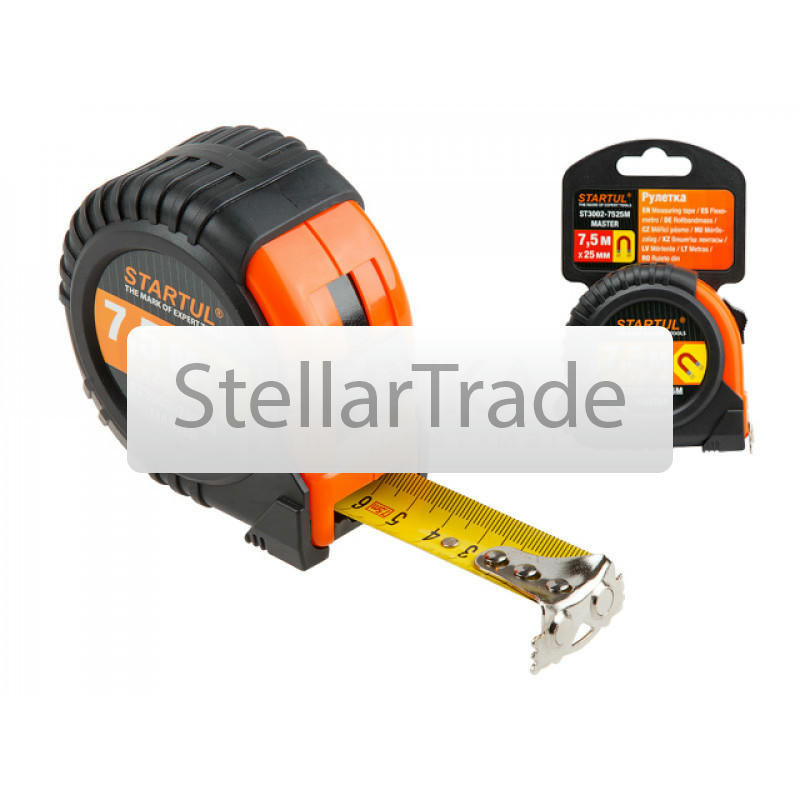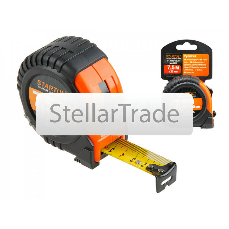 Рулетка 7,5м/25мм STARTUL MASTER (ST3002-7525М) ST3002-7525M ST3002-7525M3 300Купить!тг.Stellartrade.kzДоставка: из АлматыПожаловаться--- Технические характеристики: Назначение: используется при выполнении измерительных или разметочных работ, Материал изготовления: ABS-пластик, резина, сталь, еще→Толщина ленты мм: 0,115, Цена деления мм: 1, Класс точности: 2, Не применяется/используется в сфере законодательной метрологии, --- Преимущества: обрезиненный