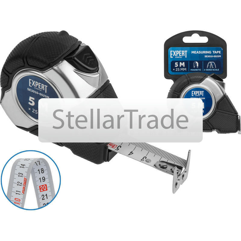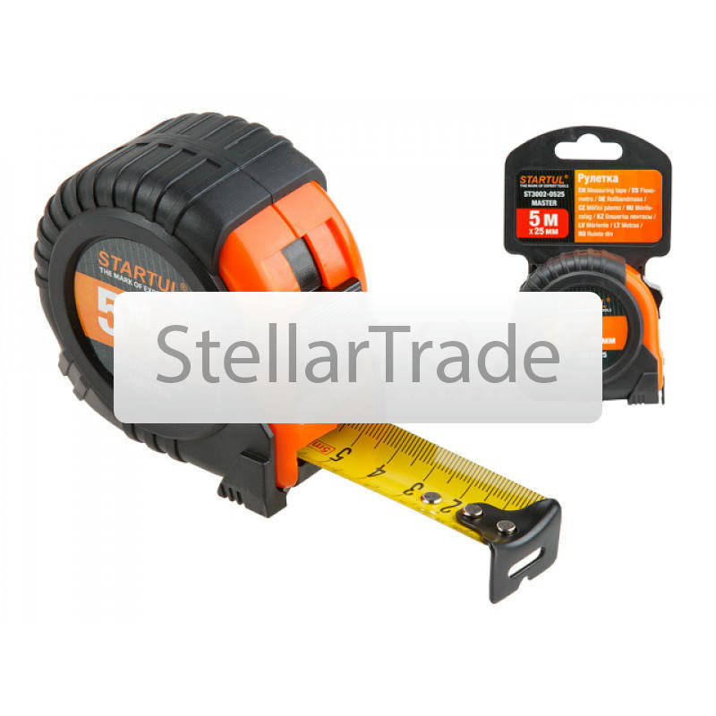 Рулетка 5м/25мм EXPERT STARTUL (SE3012-0525M) SE3012-0525M3 500Купить!тг.Stellartrade.kzДоставка: из АлматыПожаловаться--- Технические характеристики: Назначение: используется при выполнении измерительных или разметочных работ, Толщина ленты, мм: 0,135, Цена деления: еще→1 мм, Класс точности: 2, Материал полотна: сталь, Особенности: 3-х слойное полимерное покрытие, наружный слой износостойкий прозрачный нейлон, что существенно увеличивает ресурс работы