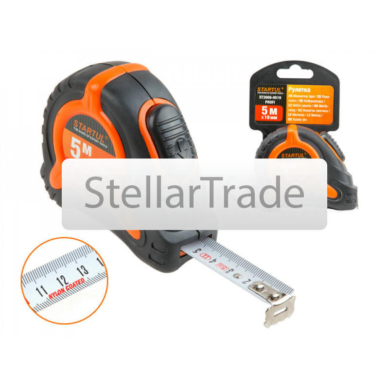 Рулетка 5м/19мм EXPERT STARTUL (SE3012-0519M) SE3012-0519M2 830Купить!тг.Stellartrade.kzДоставка: из АлматыПожаловаться--- Технические характеристики: Назначение: используется при выполнении измерительных или разметочных работ, Толщина ленты, мм: 0,135, Цена деления: еще→1 мм, Класс точности: 2, Материал полотна: сталь, Особенности: 3-х слойное полимерное покрытие, наружный слой износостойкий прозрачный нейлон, что существенно увеличивает ресурс работы