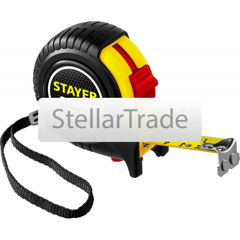 STAYER STABIL 3м / 16мм профессиональная рулетка в ударостойком обрезиненном корпусе с двумя фиксаторами 34131-03z021 340Купить!тг.All-tools.kzДоставка: из АлматыПожаловатьсяПрофессиональная рулетка с нейлоновом покрытием полотна, увеличивающее срок службы, магнитным крюком и дополнительным фикатором для удобства работы