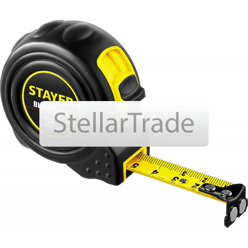 STAYER BlackMax 5м / 19мм рулетка в ударостойком полностью обрезиненном корпусе и двумя фиксаторами 3410-05z021 690Купить!тг.All-tools.kzДоставка: из АлматыПожаловатьсяРулетка с дополнительным фиксатором и магнитным крюком в ударопрочном корпусе