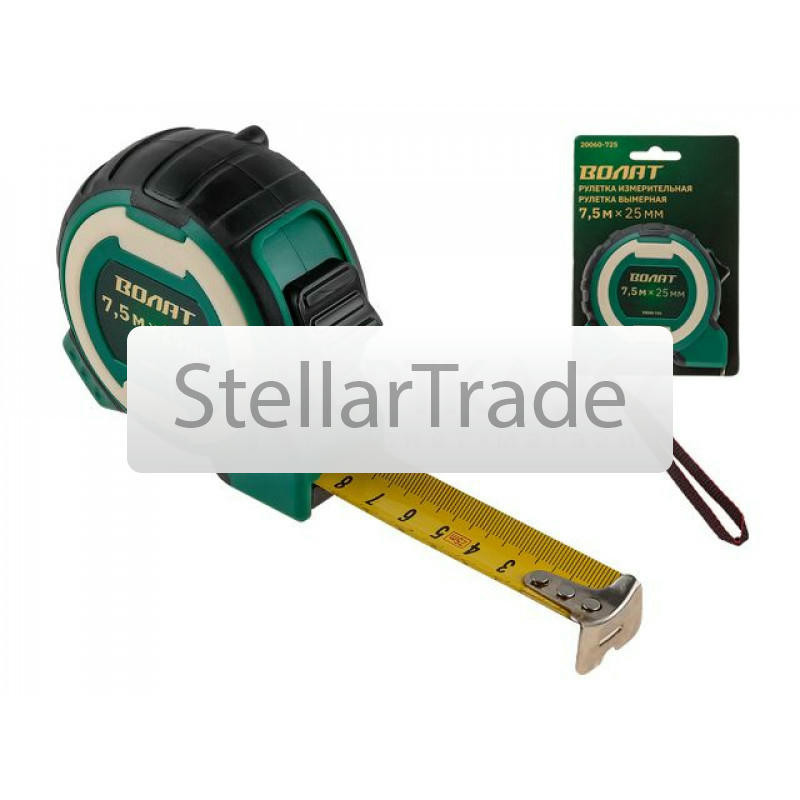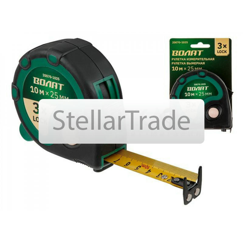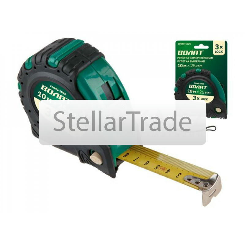 Рулетка ВОЛАТ 20040-10252 730Купить!тг.Stellartrade.kzДоставка: из АлматыПожаловатьсяПрименяется при выполнении измерительных или разметочных работ, Корпус: изготовлен из современного ABS-пластика, снабжен обрезиненным чехлом, Не применяется/используется в сф еще→ере законодательной метрологии, Преимущества ВОЛАТ 20040-1025: эргономичное устройство рулетки включает три независимых механизма фиксирования ленты, что делает работу с рулеткой