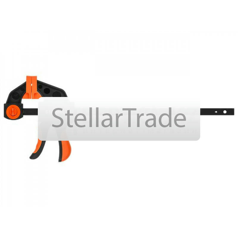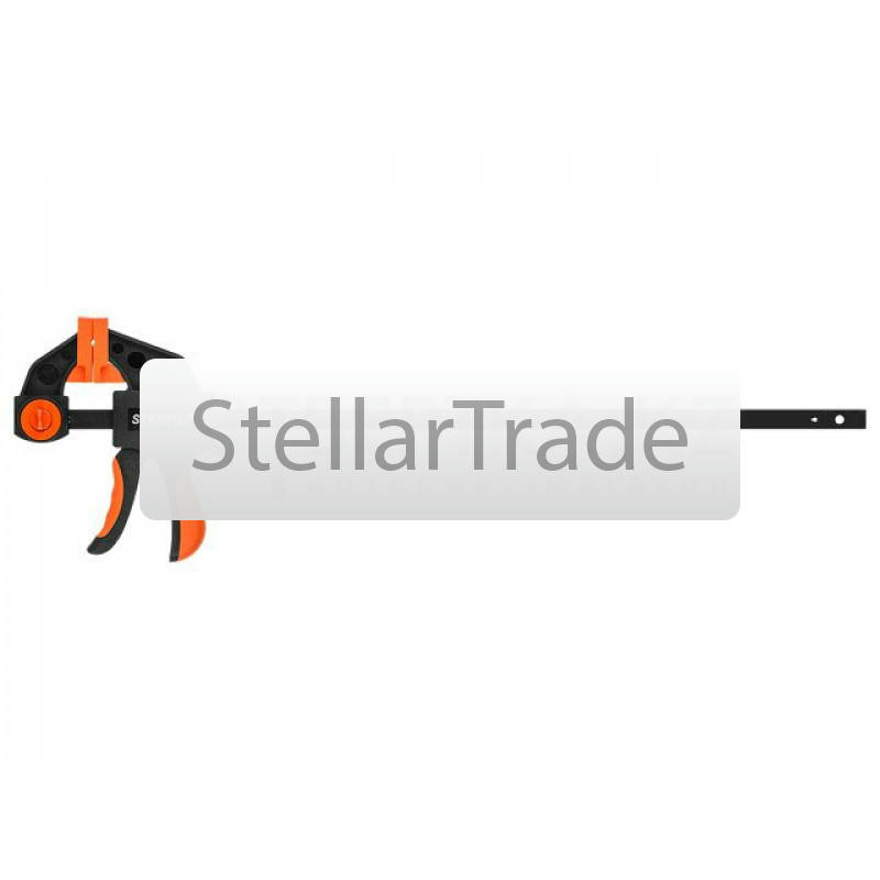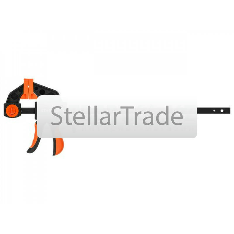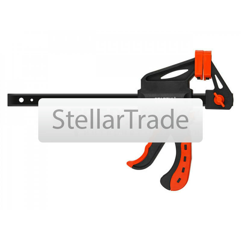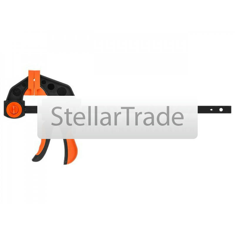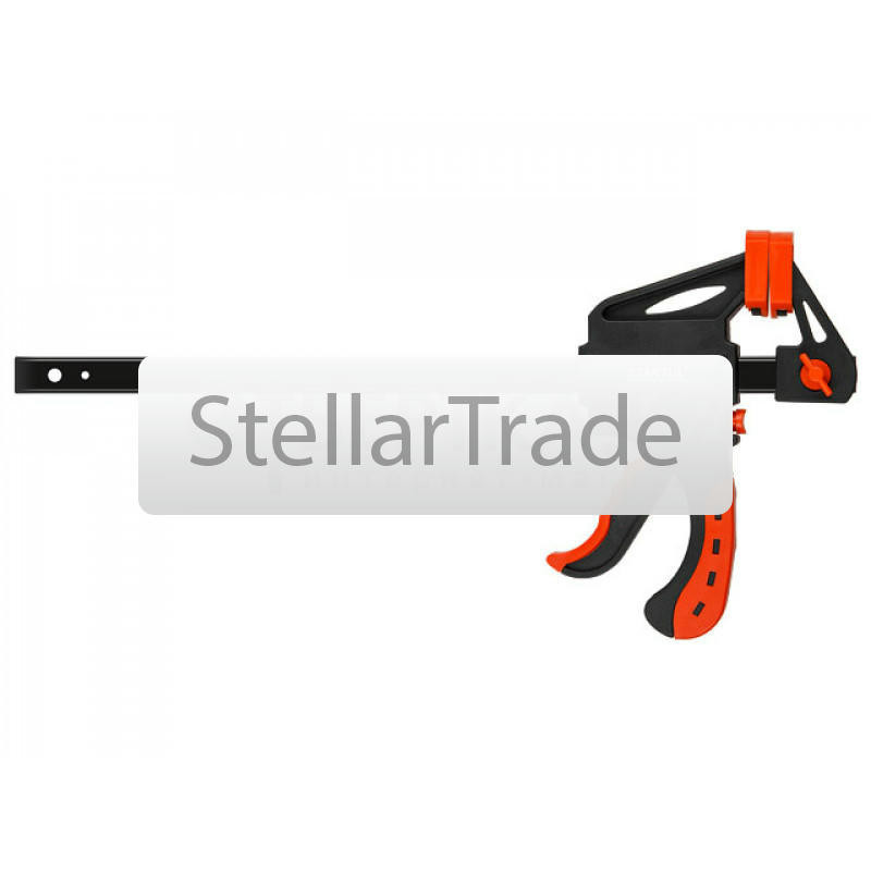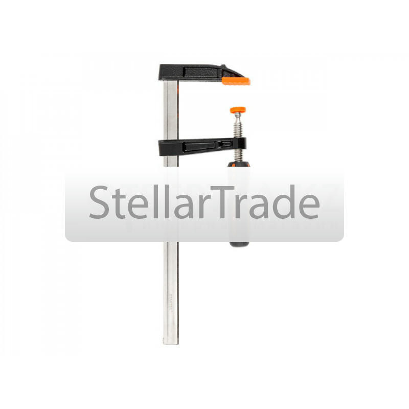 | --- Технические характеристики: Назначение: применяется для надежной фиксации предметов во время склеивания, сборки или обработки, Описание: на губках защитные колпачки предотвращают повреждение деталей, обрезиненная рукоятка удобна в работе, Зажим: винтовой, Глубина зажима, мм: 80, Ширина зажима, мм: 300, Толщина направляющей, мм: 6, | |