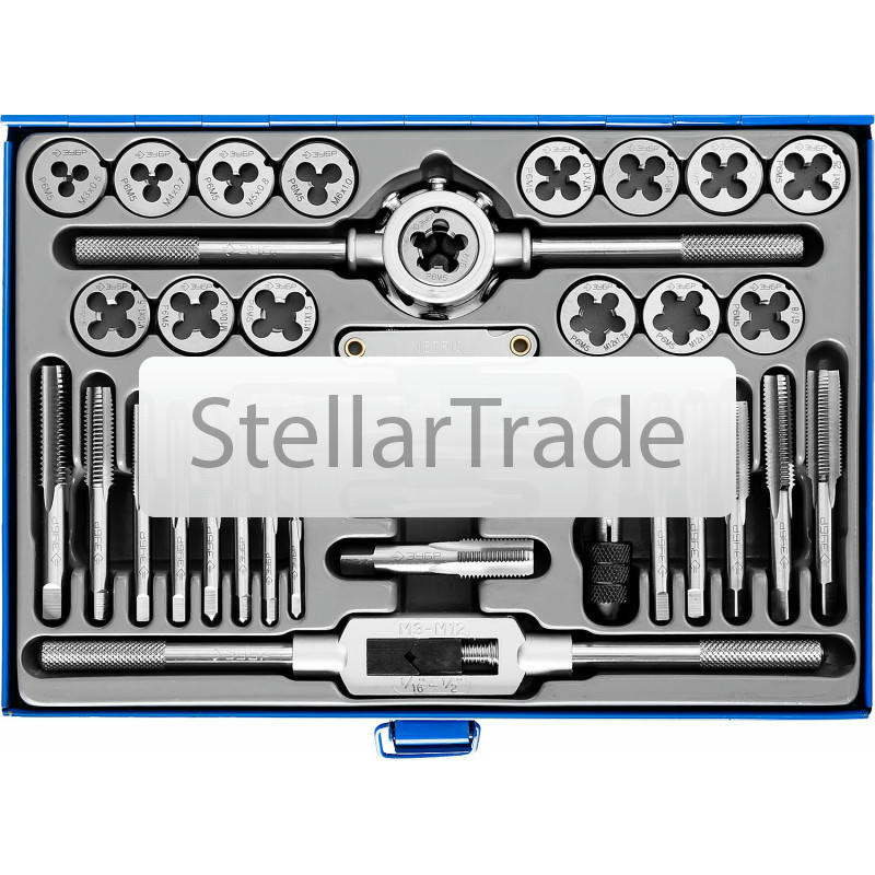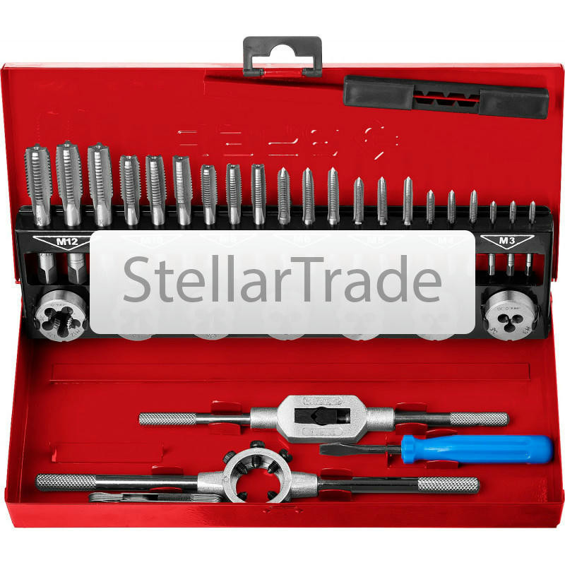 Набор метчиков и плашек ЗУБР 28117-H35z01Резьбонарезной инструмент ЗУБР производится на самом точном современном оборудовании. Контроль каждого этапа производства гарантирует безупречное качество инструмента Преимущества ЗУБР 28117-H35_z01: Метчики изготовлены из инструментальной стали 9ХС по ГОСТ 3266-81 Плашки изготовлены из инструментальной стали 9ХС по ГОСТ 9740-71 Плашкодержатель оснащен 41 070 тг.Stellartrade.kzДоставка: из АлматыПожаловатьсяКупить!
