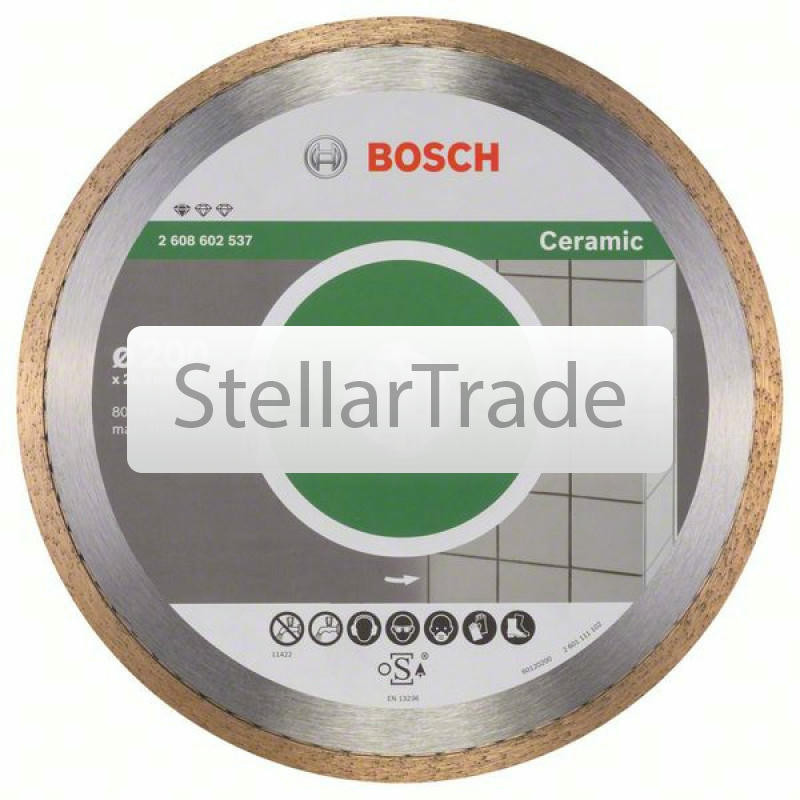 Алмазный отрезной круг Bosch 260860253816 910Купить!тг.Stellartrade.kzДоставка: из АлматыПожаловатьсяАлмазный отрезной круг Bosch Standard for Ceramic 230 x 25,40 x 1,6 x 7 mm Для аккуратных кромок при резке керамической плитки. Универсальное экономичное решение для обработки керамическо еще→й плитки. Отрезная кромка, наносимая методом непосредственного спекания. Алмазный отрезной круг Bosch Standard for Ceramic 230 x 25,40 x 1,6 x 7 mm 2608602538 Диаметр, мм 230 Диаметр отверстия,