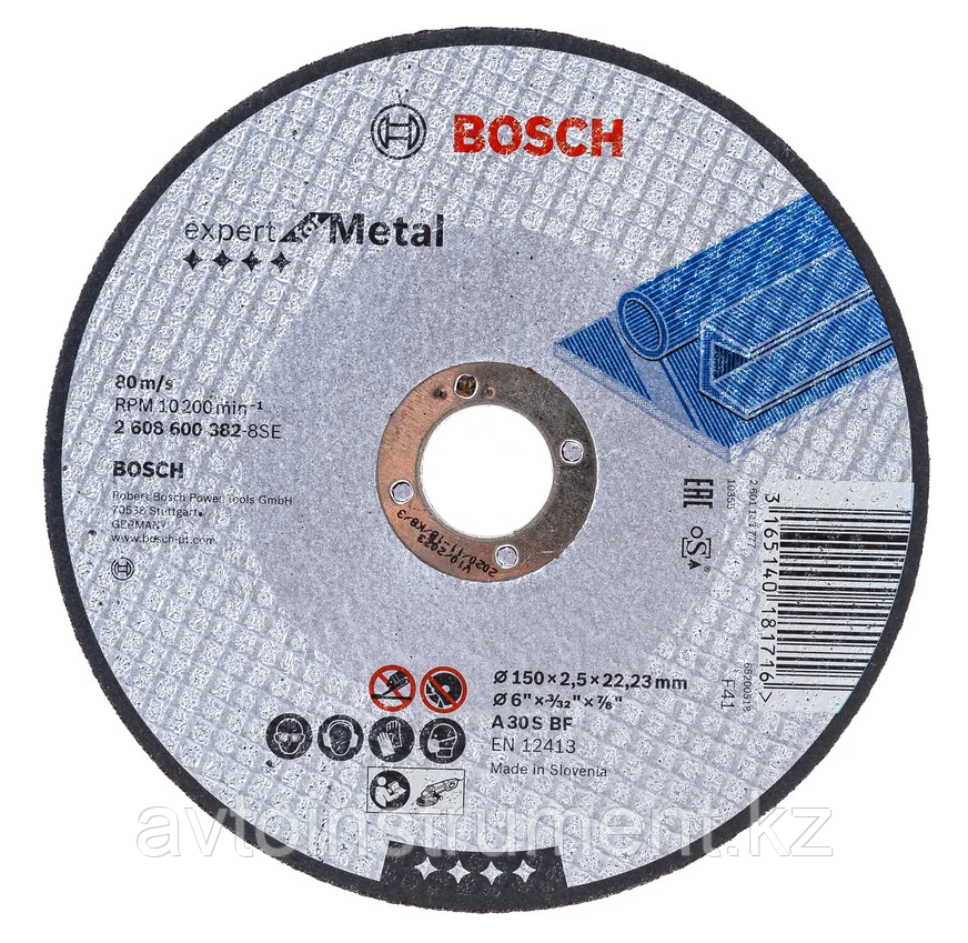 Bosch 2608600382483Купить!тг.Avtoinstrument.kzДоставка: из АстаныПожаловатьсяОписание: Отрезной прямой круг Bosch 2608600382 использется для угловых шлифмашин ручного применения для обработки металла. Внешний диаметр - 150 мм внутренний - 22. мм толщина — 2.5 мм