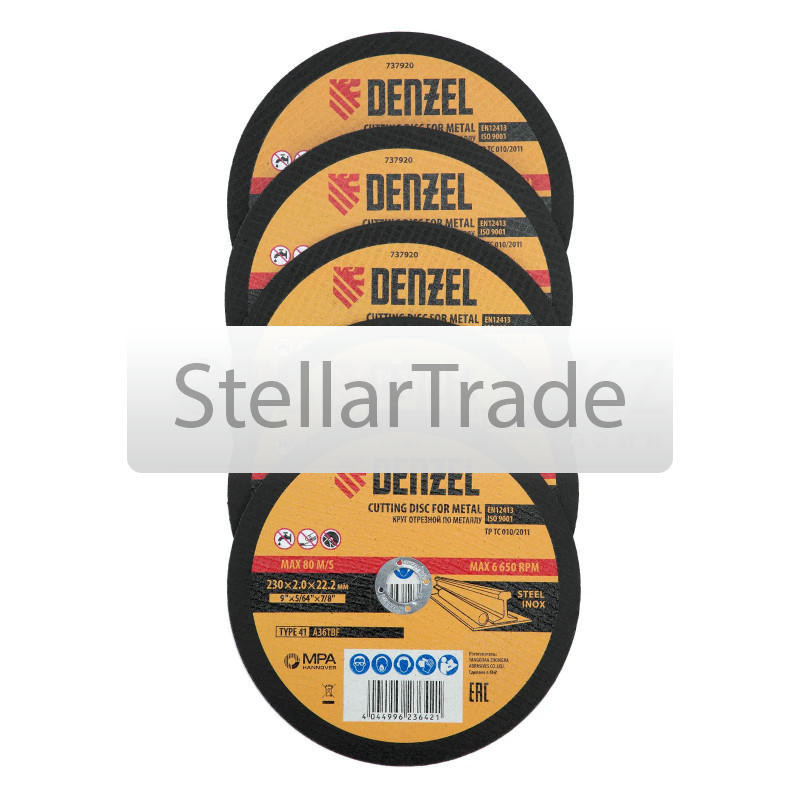 Круг отрезной Denzel 7379204 720Купить!тг.Stellartrade.kzДоставка: из АлматыПожаловатьсяКруг отрезной по металлу Denzel 737920 (A36TBF) размером 230 х 2,0 х 22,2 мм, 5 шт. в металлической банке, устанавливается на УШМ соответствующего типоразмера. Универсальная оснастка подходит для резк еще→и легированных (нержавеющих) и углеродистых (черных) сталей. Набор предназначен для профессионального использования и большого объема работ (сухой рез). Преимущества Denzel 737920: