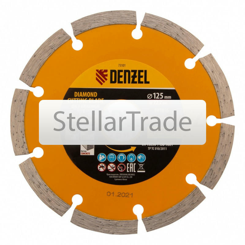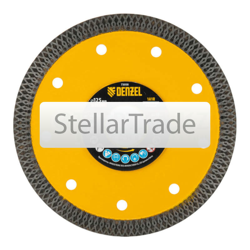 Диск алмазный отрезной Denzel 730585 670Купить!тг.Stellartrade.kzДоставка: из АлматыПожаловатьсяАлмазный диск ТМ Denzel "Сплошной" арт 73058, ф125 х 22,2 мм, предназначен для резания мрамора, керамогранита и керамическую плитки, камня. Устанавливается на УШМ (болгарку) или плиткорез с посадочным еще→диаметром 22,2 мм. Высокая концентрация алмазов и супертонкая рабочая часть диска обеспечивает идеальную частоту кромок и высокую скорость реза. Особая сплошная форма режущей части позволяет