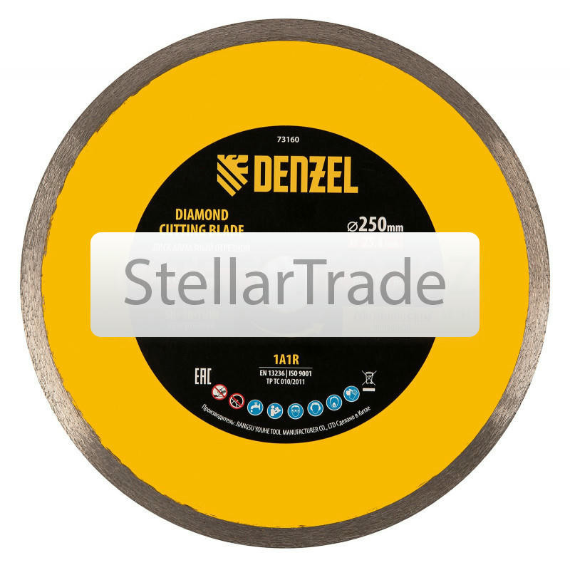 Диск алмазный сплошной Denzel 7316015 410Купить!тг.Stellartrade.kzДоставка: из АлматыПожаловатьсяАлмазный диск ТМ Denzel "Сплошной" арт 73160, ф250 х 25,4 мм, предназначен для мокрого резания мрамора, керамогранита и керамическую плитки, камня. Устанавливается на плиткорез или УШМ (болгарку) с по еще→садочным диаметром 25,4 мм. Высокая концентрация алмазов и супертонкая рабочая часть диска обеспечивает идеальную частоту кромок и высокую скорость реза. Диск произведен по технологии горячего