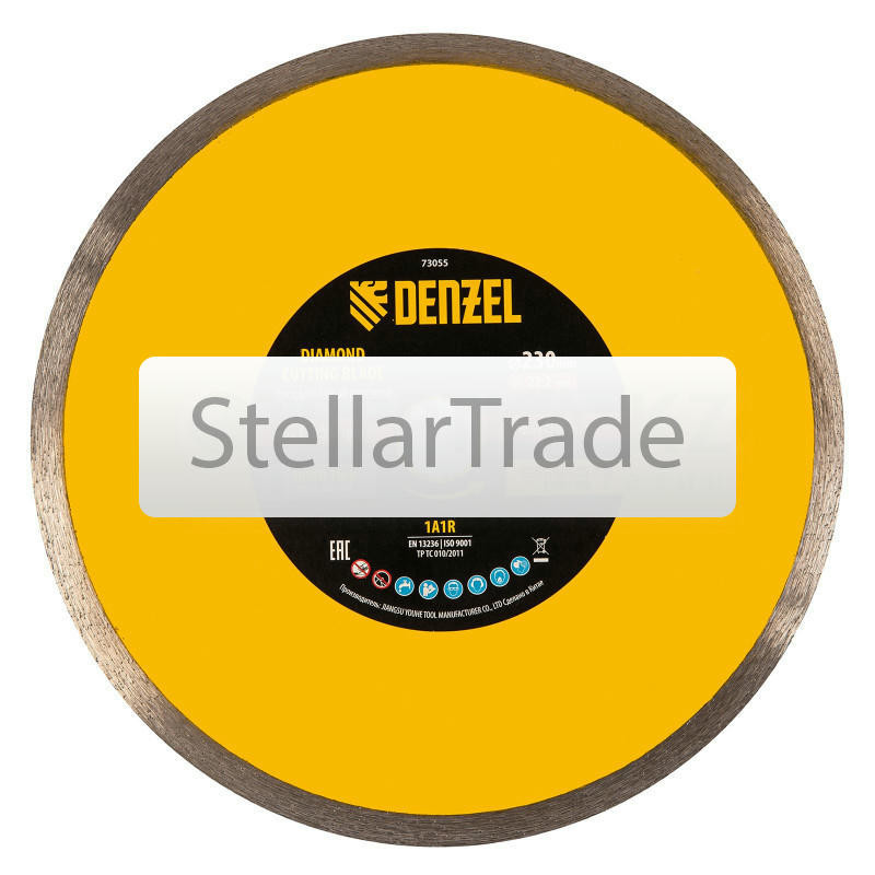 Диск алмазный отрезной Denzel 730559 830Купить!тг.Stellartrade.kzДоставка: из АлматыПожаловатьсяАлмазный диск ТМ Denzel "Сплошной" арт 73055, ф230 х 22,2 мм, предназначен для мокрого резания мрамора, керамогранита и керамическую плитки, камня. Устанавливается на УШМ (болгарку) или плиткорез с по еще→садочным диаметром 22,2 мм. Высокая концентрация алмазов и супертонкая рабочая часть диска обеспечивает идеальную частоту кромок и высокую скорость реза. Диск произведен по технологии горячего