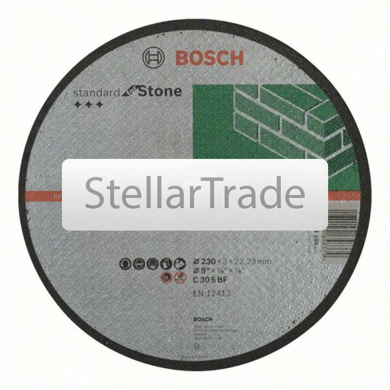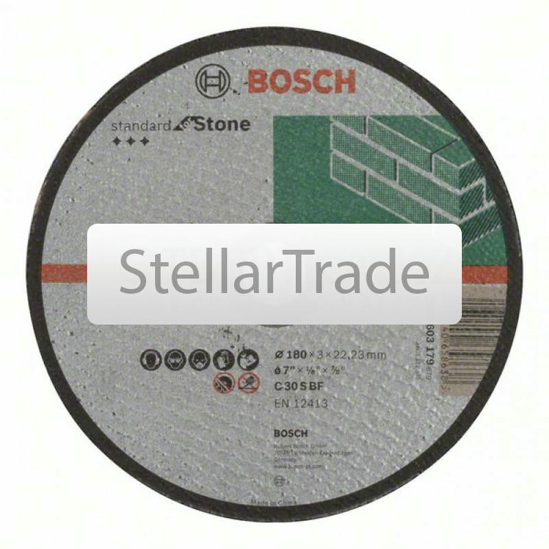 Отрезной круг прямой Bosch 2608603179880Купить!тг.Stellartrade.kzДоставка: из АлматыПожаловатьсяОтрезной круг, прямой, Bosch Standard for Stone C 30 S BF, 180 mm, 22,23 mm, 3,0 mm; Прямые Отрезные круги по камню с хорошим соотношением «цена-производительность» Для ручны еще→х угловых шлифмашин Максимальная окружная скорость: 80 м/с (в зависимости от частоты вращения и диаметра круга) Отрезной круг, прямой, Bosch Standard for Stone C 30 S BF, 180 mm, 22,23 mm, 3,0 mm 2608603179 Спецификация