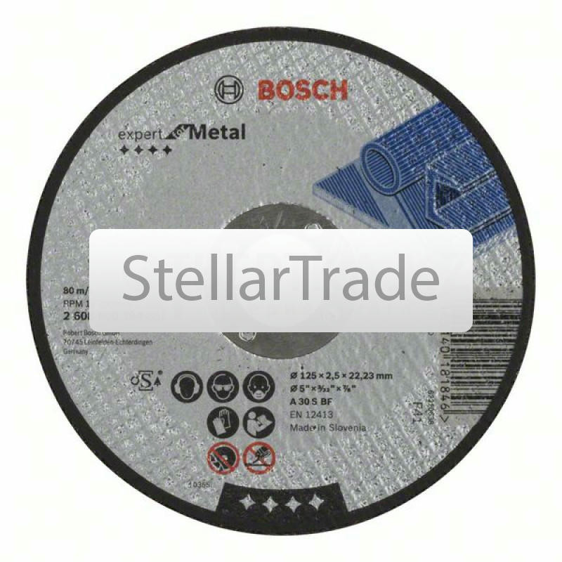 Отрезной круг прямой Bosch 2608600394470Купить!тг.Stellartrade.kzДоставка: из АлматыПожаловатьсяОтрезной круг, прямой, Bosch Expert for Metal A 30 S BF, 125 mm, 2,5 mm; Прямые Отрезные круги по металлу для высоких требований Для ручных угловых шлифмашин Мак еще→симальная окружная скорость: 80 м/с (в зависимости от частоты вращения и диаметра круга) Отрезной круг, прямой, Bosch Expert for Metal A 30 S BF, 125 mm, 2,5 mm 2608600394 Спецификация A 30 S BF Диаметр, мм 125