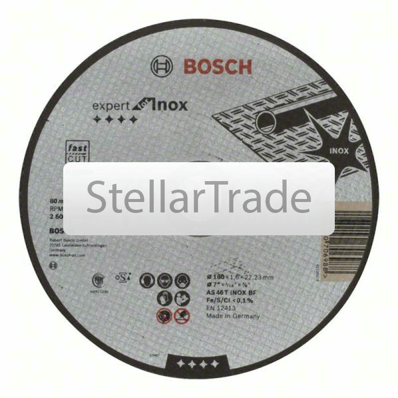 Отрезной круг прямой Bosch 26086000951 070Купить!тг.Stellartrade.kzДоставка: из АлматыПожаловатьсяОтрезной круг, прямой, Bosch Expert for Inox AS 46 T INOX BF, 180 mm, 2,0 mm; Прямые Отрезные круги по нержавеющей стали для высоких требований Для ручных угловых шлифмашин еще→Максимальная окружная скорость: 80 м/с (в зависимости от частоты вращения и диаметра круга) Fe/S/Cl Отрезной круг, прямой, Bosch Expert for Inox AS 46 T INOX BF, 180 mm, 2,0 mm 2608600095 Спецификация AS 46 T INOX BF