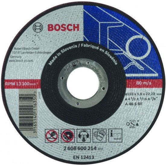 Диск шлифовальный по металлу Bosch 115х22.2мм 26086005391 224Купить!тг. Маркетплейс: Satu.kz Ani-Sun Trade Доставка: по Казахстану ПожаловатьсяДиск шлифовальный по металлу Bosch 115х22.2мм 2608600539 - используется в ручных угловых шлифовальных машинах. Содержание хлора, железа и серы в данной оснастке менее 0,1 процента. Твердый круг средне еще→й зернистости подходит для обработки нержавеющей стали.*Внимание, изображение товара может отличаться от реального! Правильные параметры указаны в технических характеристиках товара.Комплектация:Диск 1 шт.Упаковка 1 шт.