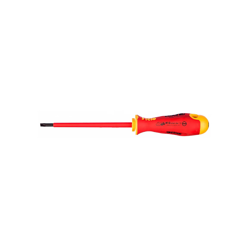 Отвертка диэлектр шлицевая E-Slim Ergonic VDE SL 55х10х125мм Felo 41395590 !!!7 040Купить!тг. Маркетплейс: Satu.kz Mojo Доставка: по Казахстану ПожаловатьсяДиэлектрическая отвертка Felo Ergonic плоская шлицевая 5.5x1.0x125 - плоская шлицевая , служит для выполнения электротехнических операций под напряжением до 1000В и работ с крепежом, имеющим профиль SL.