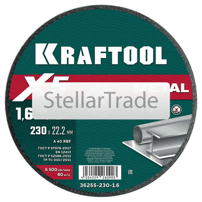Отрезной диск KRAFTOOL 36256-125-1.6 36255-125-1.6500Купить!тг.Stellartrade.kzДоставка: из АлматыПожаловатьсяАбразивные отрезные диски KRAFTOOL X7-EXTREM обладают максимально возможной производительностью при резке деталей и заготовок из металла и нержаеющих сталей. Преимущества KRAFTOOL 36255-1 еще→25-1.6: Увеличенный рабочий ресурс. Комфортный рез без рывков и подклинивания. Стабильное искрообразование. Гарантия безопасности применения. Использование KRAFTOOL