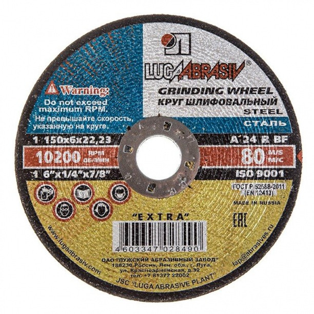 Шлифовальные диски по металлу Luga Abrasiv 150х6х22.23500Купить!тг. Маркетплейс: Satu.kz ТОО"Рутилл" Доставка: по Казахстану ПожаловатьсяШлифовальные диски по металлу Шлифовальный круг, имеющий прямой профиль – это наиболее распространенный и востребованный вид твердого шлифовального инструмента самого различного применения. Рабочей по еще→верхностью этого изделия может выступать ровная поверхность внешней периферии круга или боковая плоскость диска. Органическая бакелитовая, вулканитовая или глифталевая
