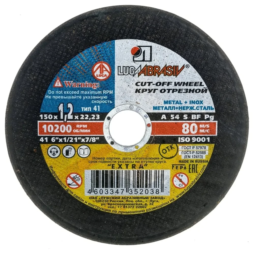 Отрезные диски Луга, 150 мм1 000Купить!тг. Маркетплейс: Satu.kz АВТО ФОРУМ Доставка: по Казахстану ПожаловатьсяДиаметр внешний - 150 Диаметр внутренний - 22.23 Толщина - 1.2 Диск отрезной Луга Абразив Отрезные диски Луга Абразив предназначены для резки конструкционной, нержавеющей и углеродистой стали с помощь еще→ю угловой шлифовальной машины (УШМ). Благодаря специальному составу, не содержащему железа, серы и хлора, исключаются прижоги и загрязнения поверхности при обработке. Это делает круги