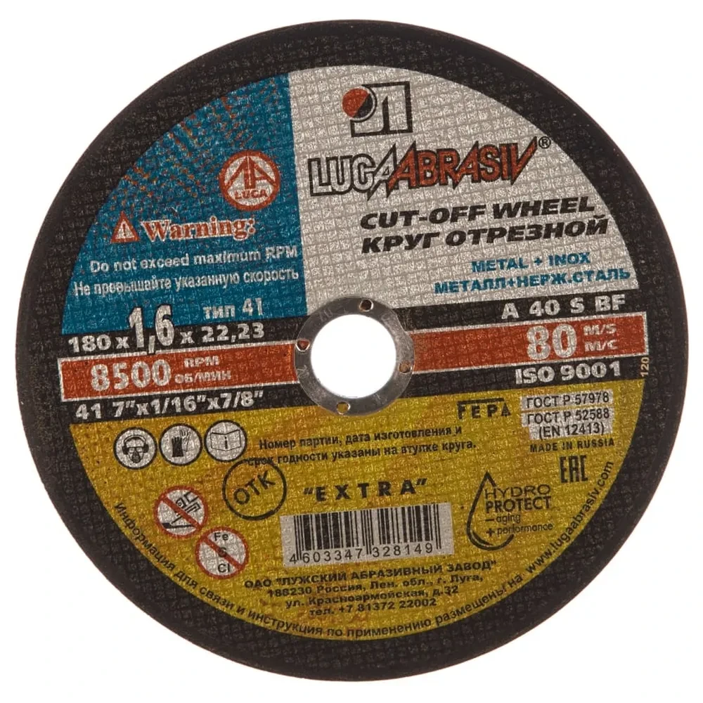 Отрезные диски Луга, 180 мм2 500Купить!тг. Маркетплейс: Satu.kz АВТО ФОРУМ Доставка: по Казахстану ПожаловатьсяДиаметр внешний - 180 Диаметр внутренний - 22.23 Толщина - 1.6 Диск отрезной Луга Абразив Отрезные диски Луга Абразив предназначены для резки конструкционной, нержавеющей и углеродистой стали с помощь еще→ю угловой шлифовальной машины (УШМ). Благодаря специальному составу, не содержащему железа, серы и хлора, исключаются прижоги и загрязнения поверхности при обработке. Это делает круги