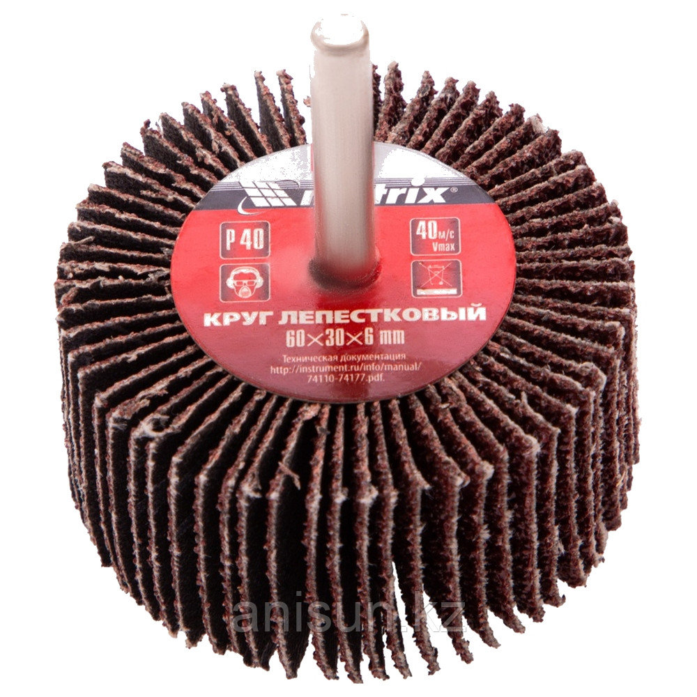 Круг лепестковый для дрели P40 MATRIX 60*30*6мм 741202 186Купить!тг. Маркетплейс: Satu.kz Ani-Sun Trade Доставка: по Казахстану ПожаловатьсяКруг лепестковый для дрели P40 MATRIX 60*30*6мм 74120 - является оснасткой для дрелей и прямых шлифовальных машинок с посадочным гнездом 6 мм, рассчитанных на скорость до 8000 об/мин. Круг применяется еще→при грубой обработке древесины, металла и других материалов. Крупнозернистый абразив P 40 эффективно снимает толстые слои краски и ржавчины, зачищает сварные швы, удаляет заусенцы.