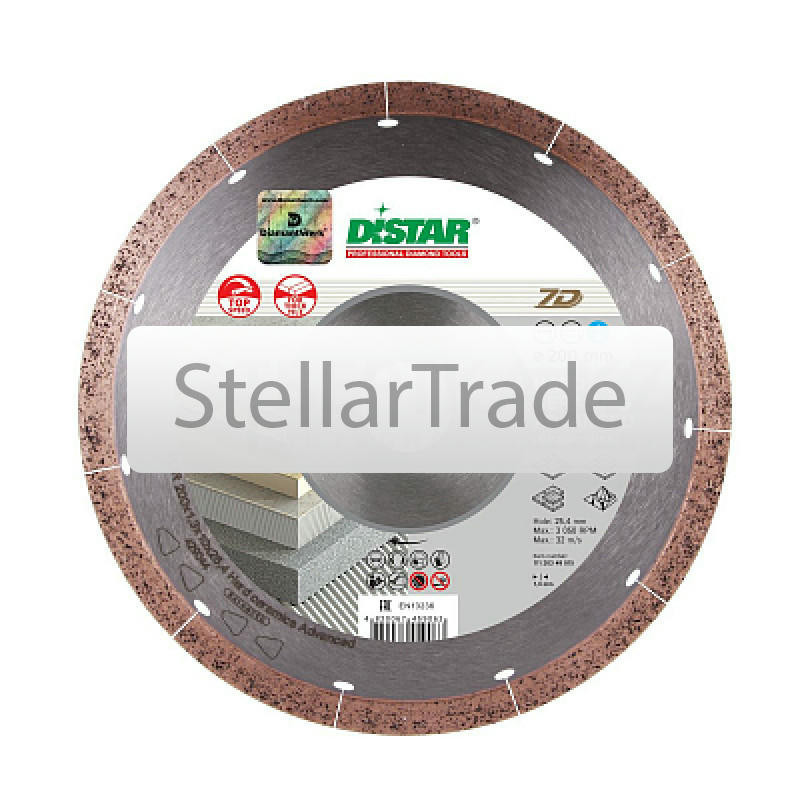 Круг алмазный DiStar Hard ceramics Advanced 1112052802241 230Купить!тг.Stellartrade.kzДоставка: из АлматыПожаловатьсяАлмазный диск HARD CERAMICS ADVANCED специально создан для резки толстого и прочного керамогранита. В состав алмазоносного слоя диска включены графитовые чипсы, которые создают микропористую структуру еще→и выступают в роли твердой смазки. Алмазоносный слой подвержен лазерной сегментации, снижающий воздействие термических нагрузок на диск. Все это обеспечивает возможность эффективной
