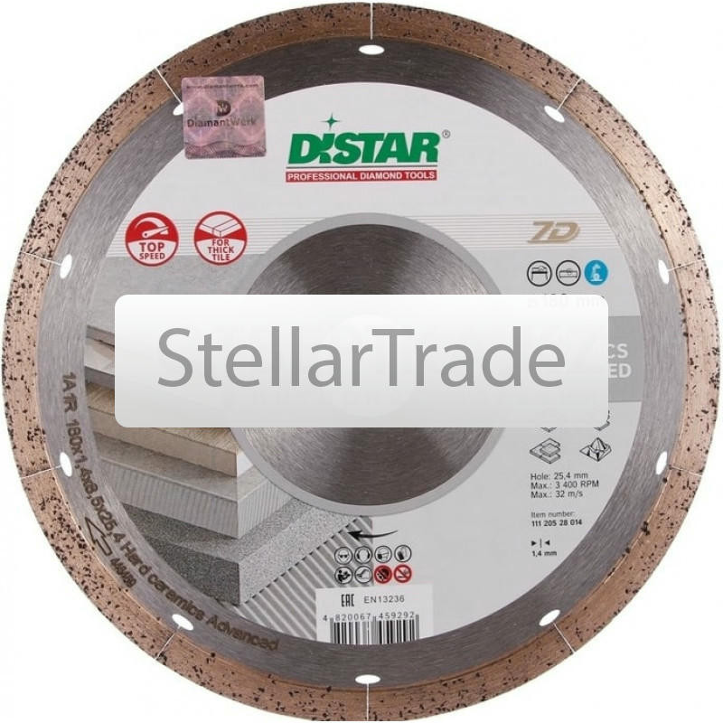 Круг алмазный DiStar Hard ceramics Advanced 1112034901520 520Купить!тг.Stellartrade.kzДоставка: из АлматыПожаловатьсяАлмазный диск DiStar Hard ceramics Advanced 11120349015 специально создан для резки толстого и прочного керамогранита. В состав алмазоносного слоя диска включены графитовые чипсы, которые создают микр еще→опористую структуру и выступают в роли твердой смазки. Алмазоносный слой подвержен лазерной сегментации, снижающий воздействие термических нагрузок на диск. Все это обеспечивает возможность