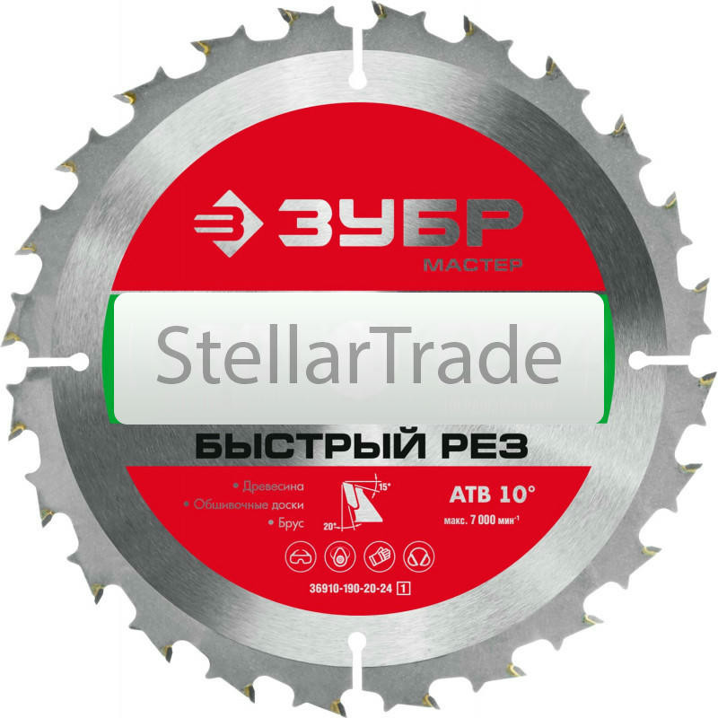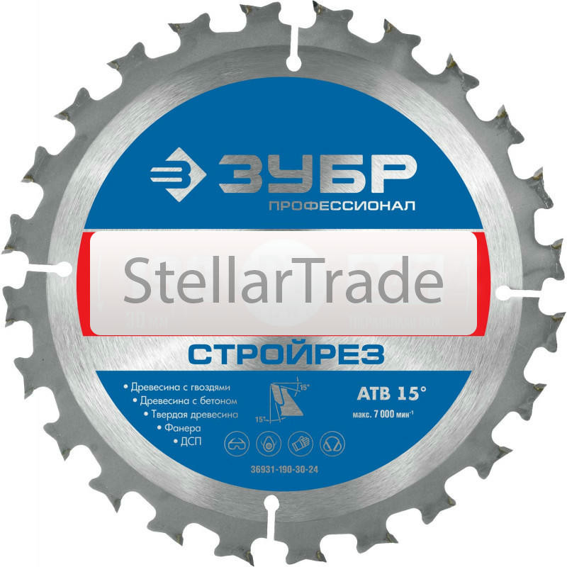Пильный диск ЗУБР 36931-190-30-244 330Купить!тг.Stellartrade.kzДоставка: из АлматыПожаловатьсяСпециальный пильный диск для строительной древесины с гвоздями, остатками цемента. Преимущества ЗУБР 36931-190-30-24: Твердосплавные резцы марки ВК8С. Автоматизи еще→рованная высококачественная пайка для надежного крепления зубьев. Закаленный корпус из высоколегированной стали препятствует возникновению биений при работе. Компьютерная балансировка