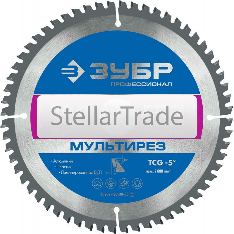 Диск пильный Зубр 36907-190-30-60z0110 290Купить!тг.Stellartrade.kzДоставка: из АлматыПожаловатьсяМультирез - многозадачный пильный диск для точного распила самых разнообразных материалов. Применяется для распила алюминиевого профиля, цветных металлов, композитных материалов, ламинированных плит, еще→полимерных и эпоксидных материалов. Преимущества ЗУБР 36907-190-30-60_z01: Твердосплавные резцы марки ВК8С. Автоматизированная высококачественная пайка для