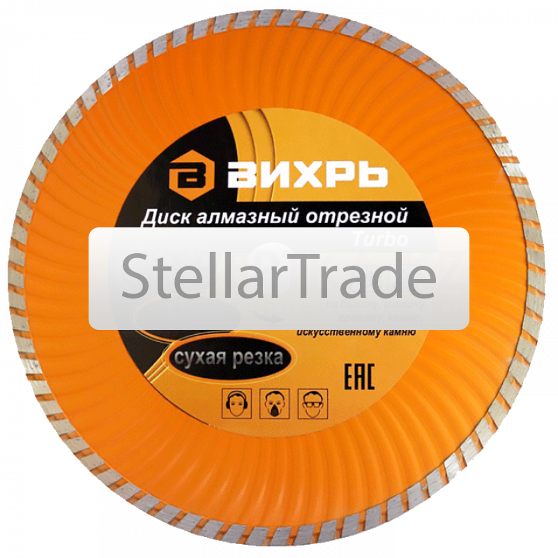 Диск алмазный отрезной Турбо Вихрь 73/10/3/206 380Купить!тг.Stellartrade.kzДоставка: из АлматыПожаловатьсяДиск алмазный отрезной Турбо 230 х 22,2 мм, сухая резка Вихрь - это алмазный отрезной диск, который используется совместно с угловыми шлифмашинами (болгарками) для сухой резки гранитных, бетонных, кир еще→пичных и каменных изделий. Особенности: Волнообразная форма металлического основания является наиболее удачной и способствует максимально быстрому удалению продуктов