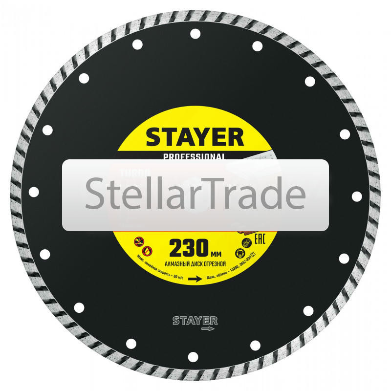 Алмазный диск STAYER TURBO Professional 3662-230z026 070Купить!тг.Stellartrade.kzДоставка: из АлматыПожаловатьсяРезка бетона, бордюрного камня, облицовочного кирпича, тротуарной плитки и других строительных материалов без принудительного охлаждения. Преимущества STAYER 3662-230_z02: Се еще→гментированная форма режущей кромки позволяет быстро и эффективно осуществлять необходимые резы в обрабатываемом материале. Оптимально подобранные компоненты металлической связки